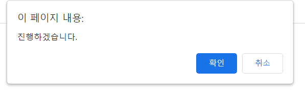 진행여부를 물을 때 취소를 누르면 false가 나옵니다.