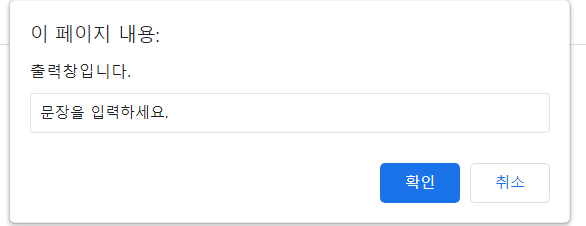 var inputPro = prompt("출력창입니다.", "문장을 입력하세요.");