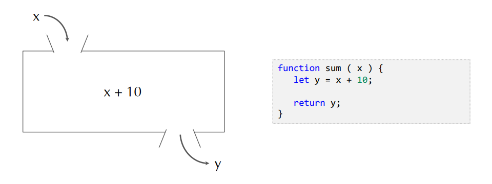 함수는 입력값(x)를 받고 생략도 가능함. 그러고 x+10 진행하고 결과값(y)을 받는다.