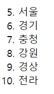 html에서는 이것을 리스트라고 부르며 리스트를 구성할 때 순서를 나타내는 방법에는 여러가지가 있다.