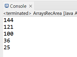 Rectangle[] recArr = { new Rectangle(6, 6), new Rectangle(5, 5), new Rectangle(10, 10),