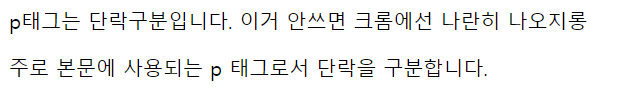 <p>주로 본문에 사용되는 p 태그로서 단락을 구분합니다.</p>