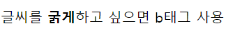 <p>글씨를 <b>굵게</b>하고 싶으면 b태그 사용</p>