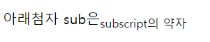아래첨자 sub은<sub>subscript의 약자</sub>
