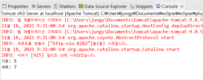 writer.println("<h1> 넓이는:" + area + "</h1>");