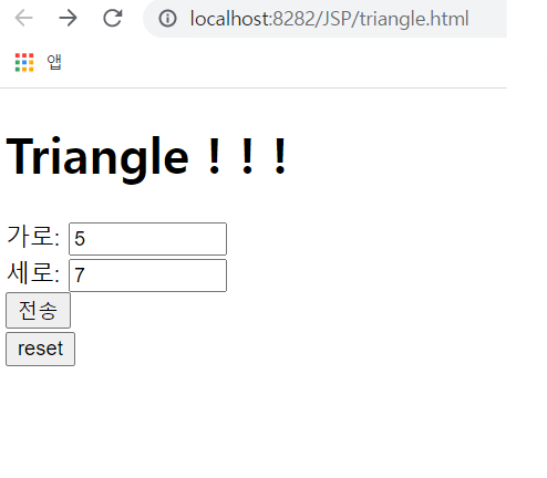 -/triangle - input 박스 두 개에 가로 세로 입력 - 해당 넓이 출력 (post방식)